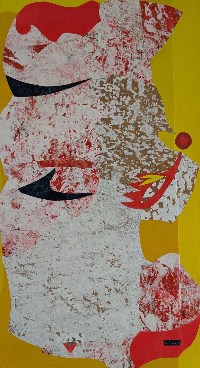 Hasta luego! Collage et acrylique sur toile flottante, 105x90 cm, juin 2025 ©Charlotte Callens (https://www.charlotte-callens.fr)